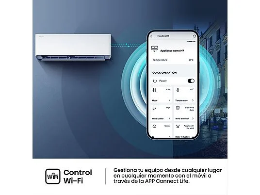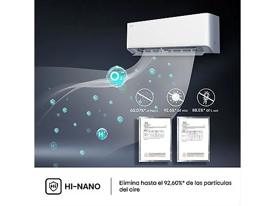 Aire acondicionado Split 1 x 1 – Hisense Uni Pure HB35, 3000 fg/h, Wi-Fi, Filtro Hi Nano, IA Smart, Blanco
