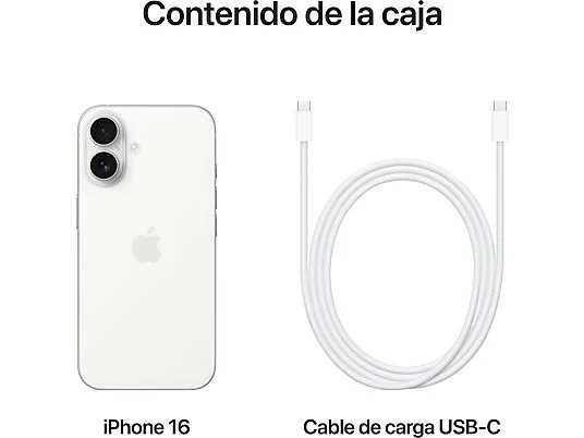 Apple iPhone 16, Blanco, 128 GB, 5G, 6.1 » OLED Super Retina XDR, Chip A18 Bionic, iOS