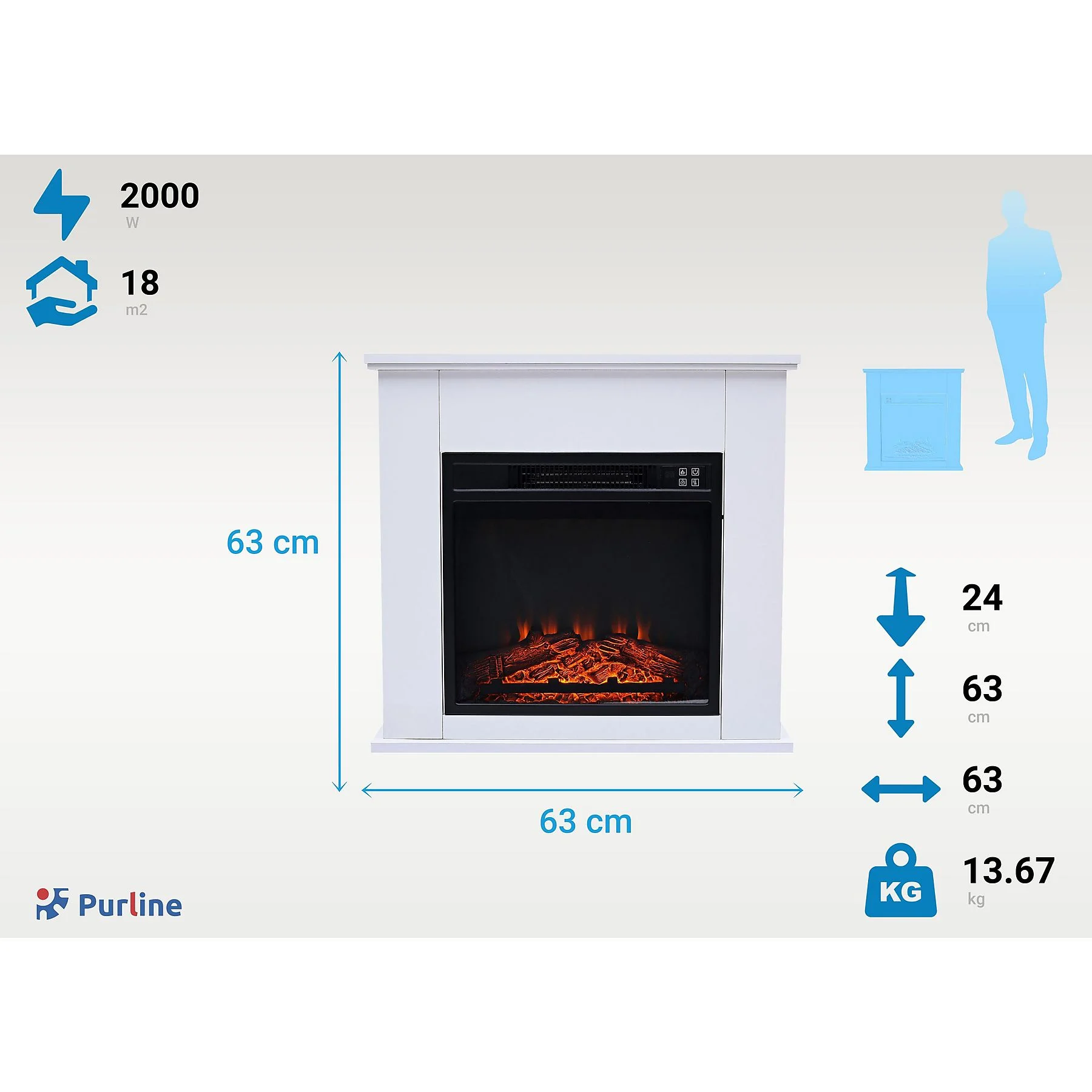 Chimenea eléctrica – PURLINE CHE-610, 2000 W, Blanco