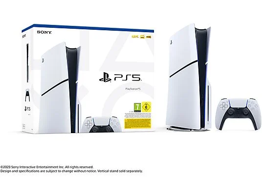 Consola PS5 Slim Standard (Chasis E), mando inalámbrico, cable HDMI, cable de alimentación de CA, cable USB, materiales impresos. (*Soporte vertical no incluido)