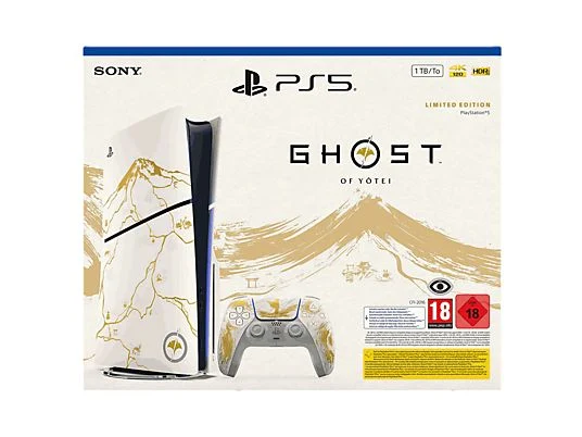 x1 Consola PS5 Slim Standard, x1 mando inalámbrico edición limitada Ghost of Yōtei, x1 cable HDMI, x1 cable de alimentación de CA, x1 cable USB, x1 materiales impresos, 2x pies de soporte horizontal (*Soporte vertical no incluido), x1 Código de descarga del juego Ghost of Yōtei |