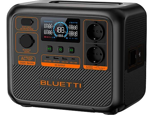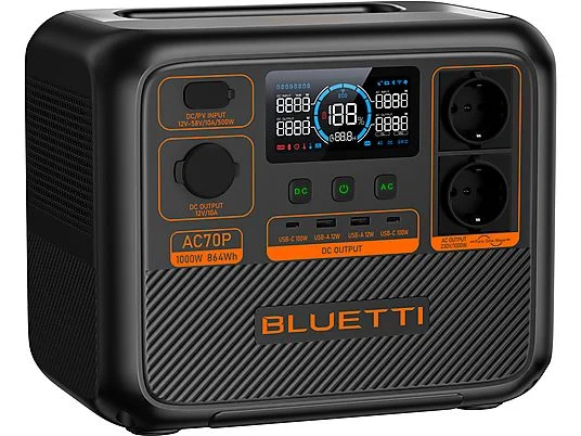 1x AC70P (accesorios incluidos), 1x panel solar Bluetti 60W (accesorios incluidos) |
