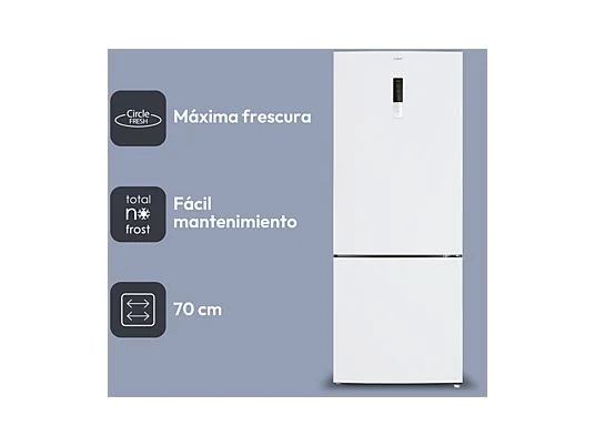 Frigorífico combi – Candy CCG5T718EW1, No Frost, 185.5 cm, Ancho especial 70 cm, 442 l, Tecnología Circle Fresh, Blanco