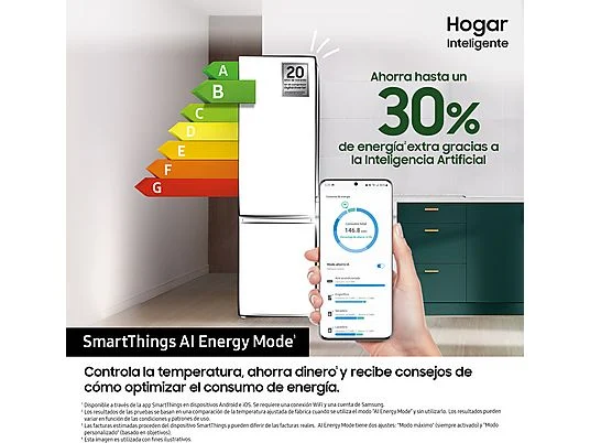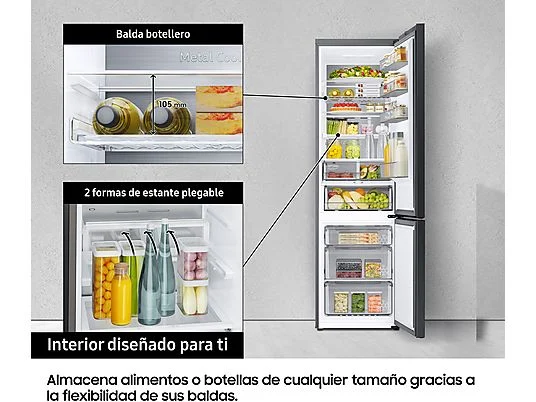 Frigorífico combi – Samsung BESPOKE Smart RB38C7B6BS9/EF, No Frost, 203cm, 387l, Twin Cooling Plus, Metal Cooling, WiFi, Inox