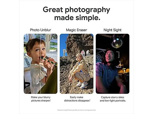 Google Pixel 7a 5G 8GB/128GB Blanco (Snow White) Dual SIM GHL1X El contenido indicado únicamente aplica a productos nuevos. |