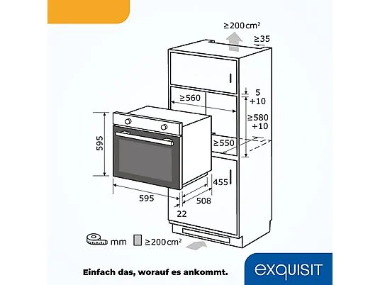 Horno multifunción – EXQUISIT EBE 76-7-H-020, Integrable, 76 l, 59,5 cm, Negro