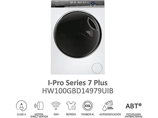 Lavadora carga frontal – Haier I-Pro Series 7 HW100GBD14979UIB, 10 kg, 1400 rpm, Motor Direct Motion, 14 programas, Wi-Fi, Autodosificación, Blanco