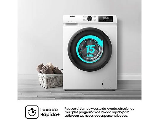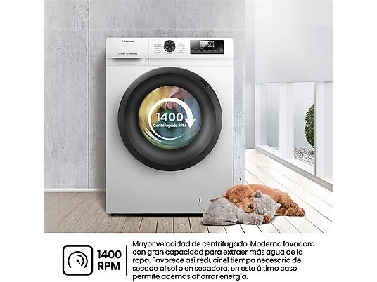 Lavadora carga frontal – Hisense WF1Q8041BW, 8 kg, 1400 Rpm, Función Vapor, Eficiencia A-20%, Blanco