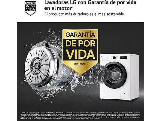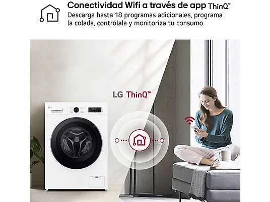 Lavadora carga frontal – LG F4X1009NWK, 9 kg, 1400 rpm, 10 programas, AI Direct Drive™, Steam™, Blanco Marfil