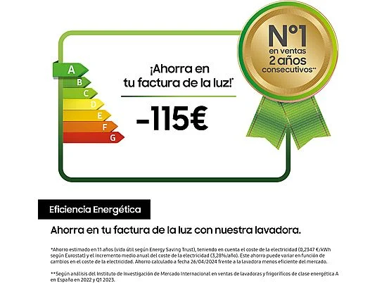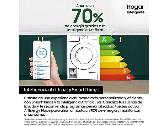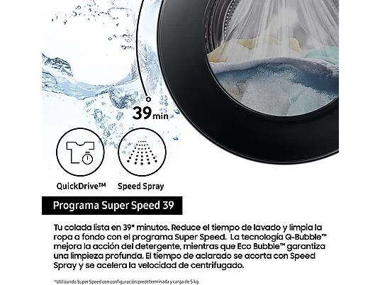 Lavadora carga frontal – Samsung WW11DG5B25AEEC, 11 kg, 1400 rpm, 14 programas, AI EcoBubble™, SmartThings™, Blanco