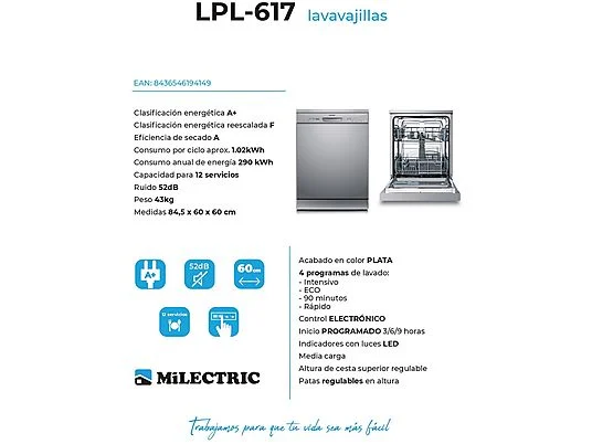 Lavavajillas libre instalación 60 cm – INFINITON P091711, 4 programas, 600 mm, Plata