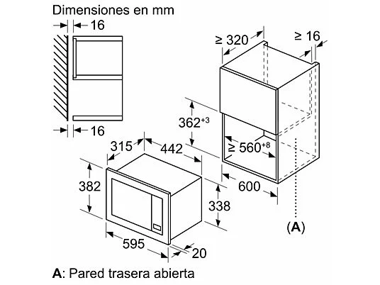 Microondas - BOSCH, BFL520MS0, 20 Litros, 5 Niveles, 800 W, Integrable, Negro El precio original era: 208.00 €.El precio actual es: 187.20 €.