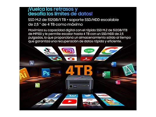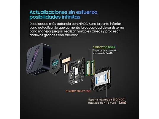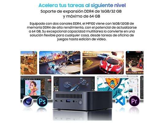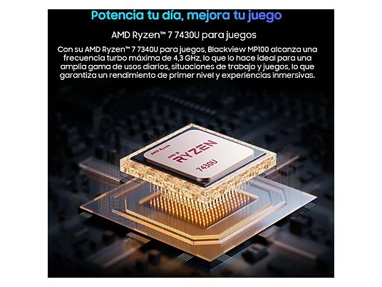 Mini PC – BLACKVIEW MP100-7430U, AMD Ryzen™ 5 7430U (Hasta 4.3GHz), 16 GB RAM, 512 GB SSD, Radeon™ RX Vega 7, Windows 11 Pro, Negra