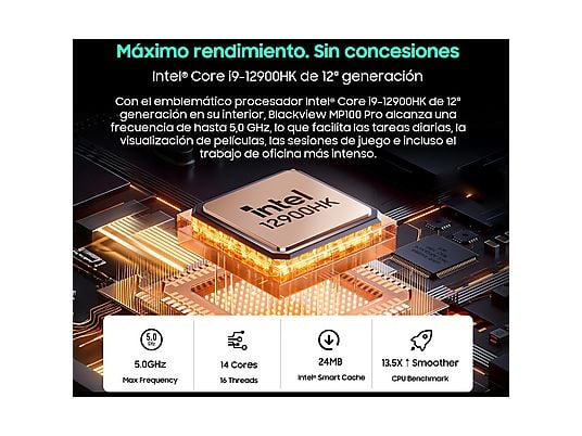 Mini PC – BLACKVIEW MP100 Pro-i9-12900HK, Intel®Alder Lake i9-12900HK (Hasta 5.0GHz), 16 GB RAM, 512 GB SSD, UHD Graphics, Windows 11 Pro, Negra