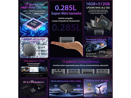 1xBlackview Mini PC, 1xAdaptador, 1xCable HDMI, 1xSoporte Vesa, 1xManual |