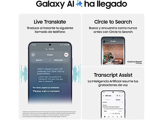 Asistente virtual, Reconocimiento de voz, Biométricas, Mejoras en la cámara con IA, Optimización del rendimiento, Procesador IA, Procesamiento de Lenguaje Natural (NLP), Traducción de lenguaje en tiempo real |