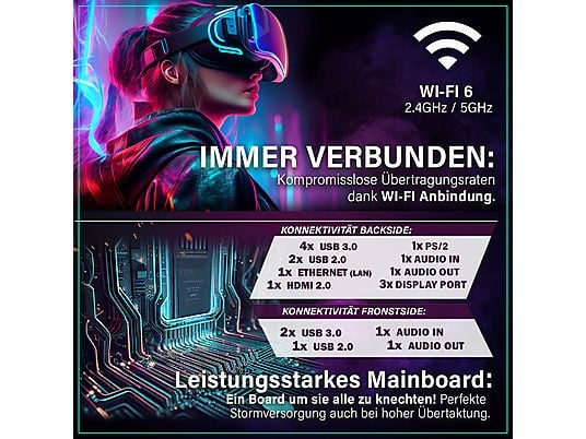 6x USB 3.0 | 4x USB 2.0 | 1x HDMI 2.0 | 3x Display Port | 2x Audio IN | 2x Audio OUT | 1x Ethernet ( LAN) | 1x PS/2 | Wifi