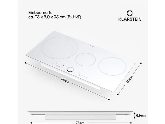 Placa de inducción – KLARSTEIN Delicatessa 80, 3 zonas, 80 cm, Blanco