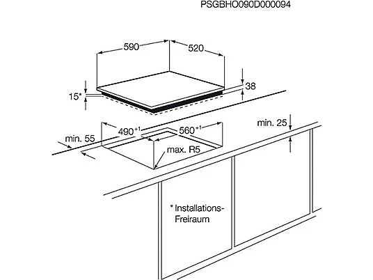 Placa vitrocerámica – Electrolux EHF6232IOK, 3 Zonas, Zona triple de 27 cm, Sin Marco, 60 cm, Negro