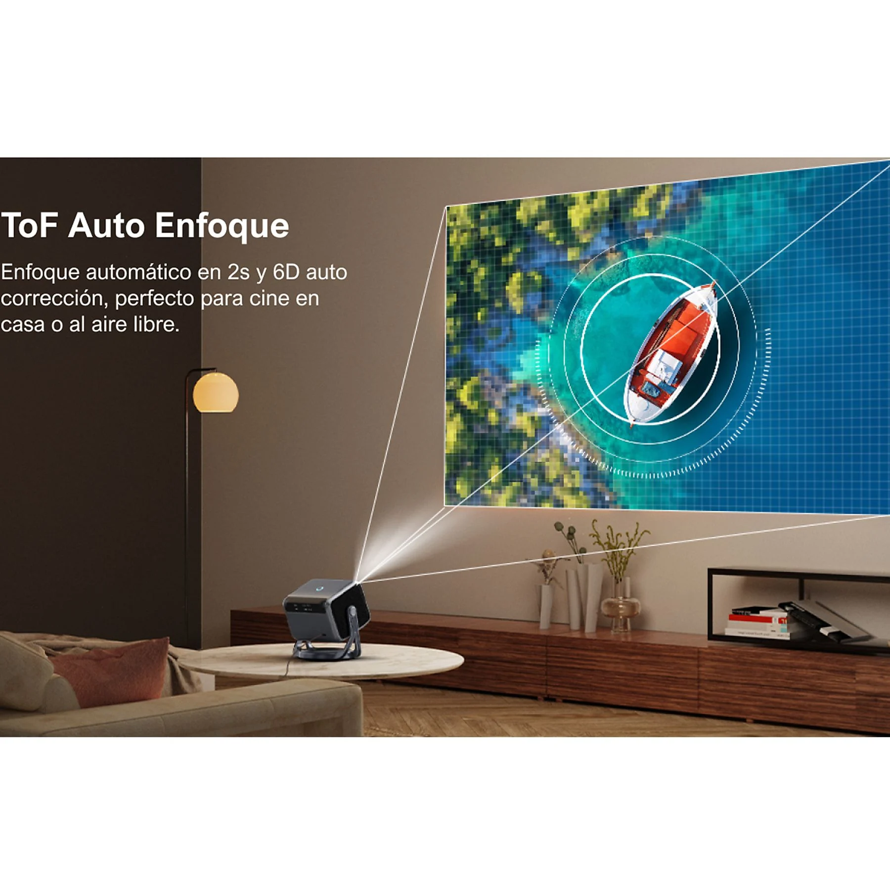 Autorización oficial Android TV 11.0; cardán de 90° sin soporte; Dolby Audio;Bluetooth 5.3; 1080P nativos&600 ANSI lúmenes; autoenfoque 2S y corrección trapezoidal 6D; motor óptico cerrado;