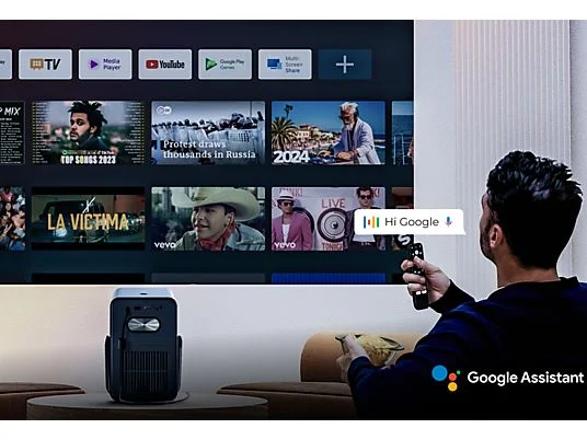 | Android 11.0 | Certificado NETFLIX | Dolby Audio| Altavoces de 30 W | WiFi | Bluetooth 5.3 | HD | Autoenfoque ToF | Evitación de objetos | Alineación de pantalla, | 1000 ANSI | Soporte 4K |