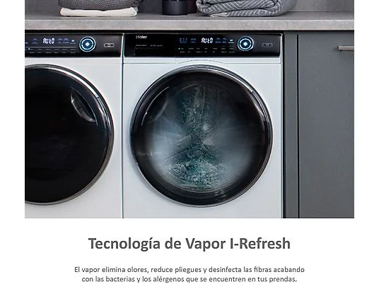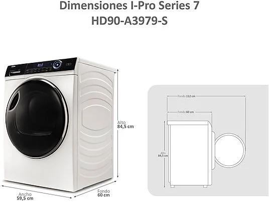 Secadora bomba de calor – Haier I-Pro Series 7 HD90-A3979-S, 9kg, 14 programas, Tambor XL con LED, Antiarrugas, Blanco