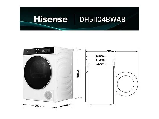 Secadora bomba de calor – Hisense DH5I104BWAB, 10 Kg, 18 programas, iFit, WiFI, Estante flexible, Blanco