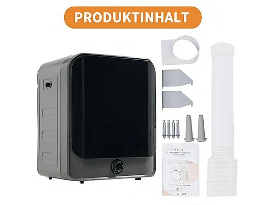 1x Secadora de evacuación, Manual de usuario, Kit de instalación para pared |