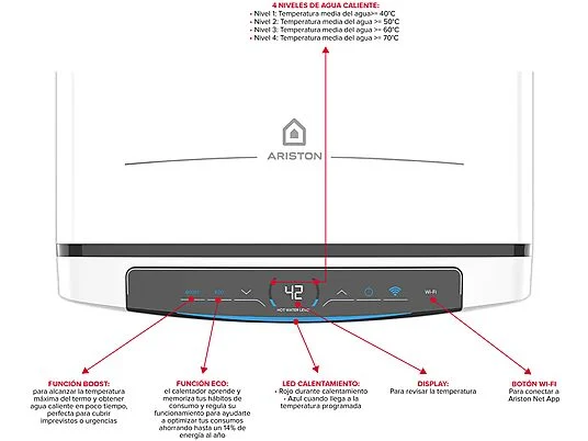 Termo Eléctrico – VELIS PRO WIFI 80 ES EU + INSTAFIX ARISTON, 80 l, Blanco