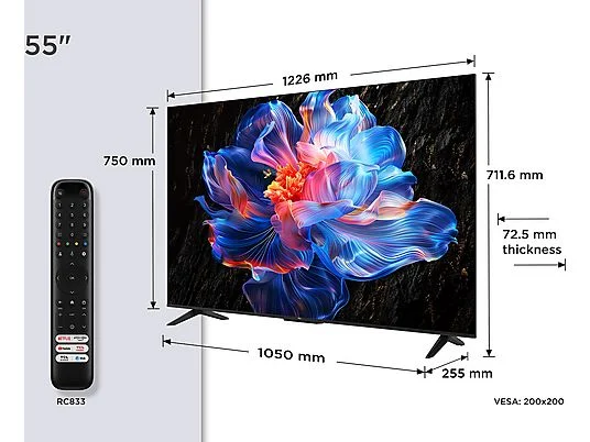 TV LED 55″ – TCL 55P6K, UHD 4K, AiPQ, Smart TV, DVB-T2, Smart TV, 60 Hz, Negro