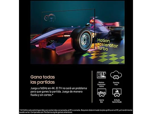 Dolby Atmos, OTS+, Q-Symphony, Tipo de altavoz 4.2.2CH, Amplificador Voz Activa Pro, Adaptive Sound Pro, Interacción por voz a larga distancia, Funciona con altavoz de IA, Gaming Hub, Multi Device Experience, Multi-View, Apple AirPlay, Daily+, Storage Share, Live Translate, Click to Search, Generative Wallpaper, Karaoke Mic |