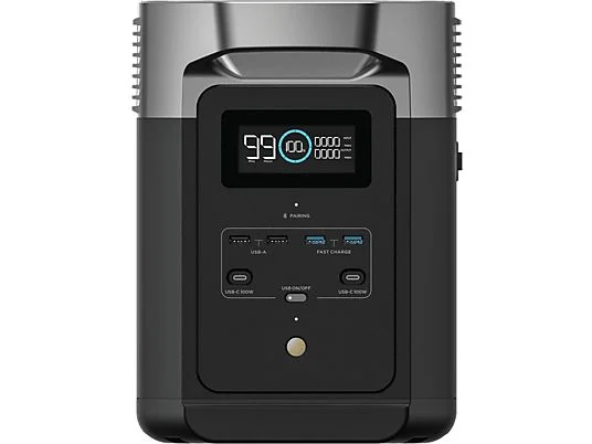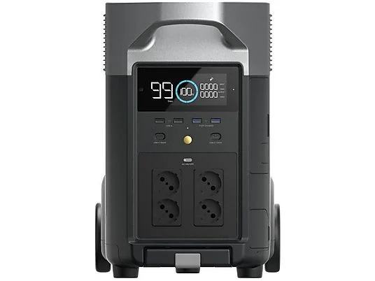 Estación de energía – EcoFlow Delta 3, 1800 W, 1024 Wh, IP65, 2x USB-C, 2x USB-A, 4x CA, 1x CC, Wi-Fi, Bluetooth, Negro
